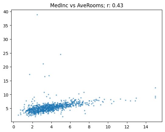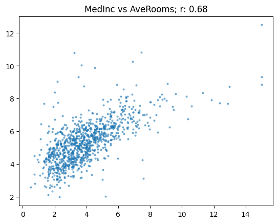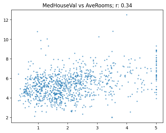 show_corr(subset, 'MedHouseVal', 'AveRooms')array([[1. , 0.68],