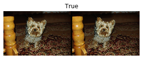 Here the Resize transform is applied to each of the two images, but not the Boolean flag. Even if we have a custom type, we can thus benefit from all the data augmentation transforms inside the library.