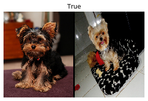 title=same_breed, ctx=ctx)Let’s create a first SiameseImage and check our show method works: