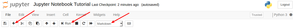 A type of cell in which you can write text is called a Markdown cell. Markdown is a very popular markup language. To specify that a cell is Markdown you need to click in the drop-down menu in the toolbar and select Markdown.