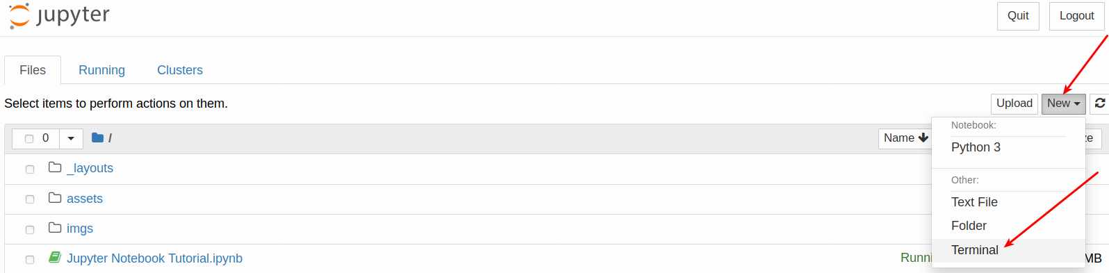 You may need to use a terminal in a Jupyter Notebook environment (for example to git pull on a repository). That is very easy to do: just press ‘New’ in your Home directory and ‘Terminal’. Don’t know how to use the Terminal? We made a tutorial for that as well. You can find it here.